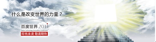 8月16日,百度2011官方網站正式上線。“什么是改變的力量?”這一頗為引人遐想的大標語,位于首頁橫幅的明顯位置。橫幅背景則是一幅酷似通天塔的圖形,塔身四面都有階梯通往頂端。而塔頂部方型壇廟的位置,則變成了一個碩大的發光體,讓人頓生“豪氣干云”之感。這一組文字與圖形的組合,似乎昭示著百度2011或將有重要戰略或產品發布。